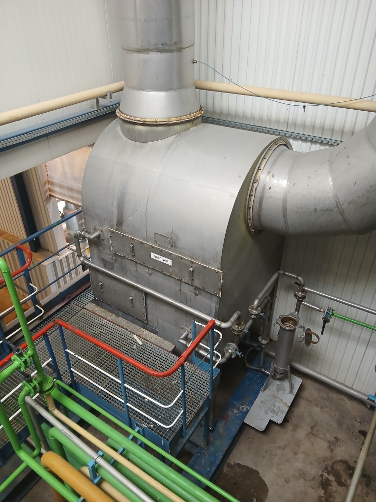 The apparatus is intended for two-stage operation including dust- and droplet separation processes. The sugar dust is separated inside the first chamber, where the Multiwir packing is sprayed from above with a circulating juice. Vertical downward direction of the flow of air allows to apply high air velocity, which increases the efficiency of the dust removal process. The sugar concentration of the circulating juice is maintained automatically in the range 50 ÷ 60Bx by periodically switching on and off the supply of the fresh thin juice to the circulation tank and the operation of the overflow.
