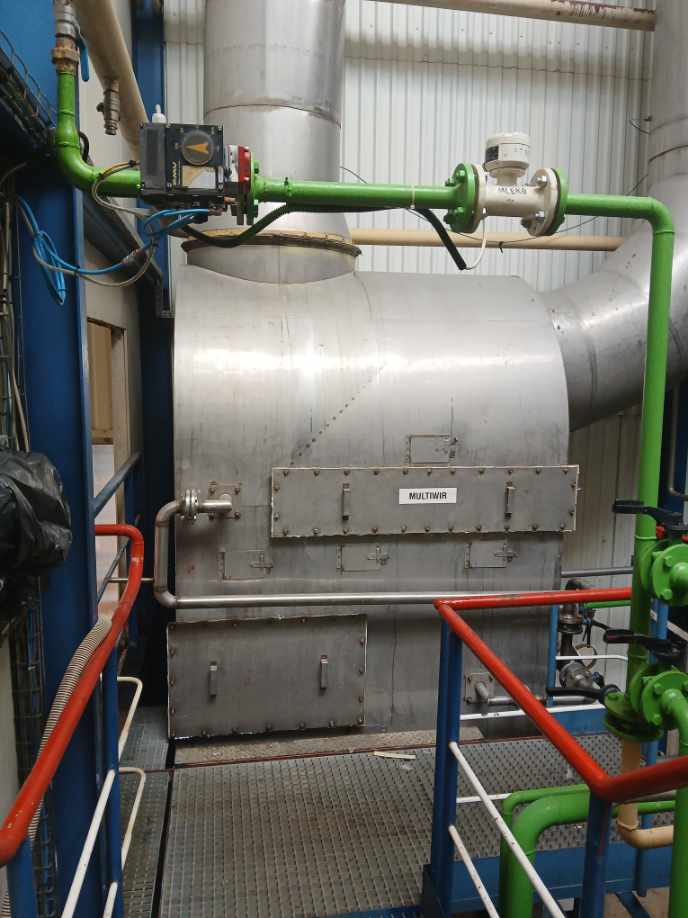 The MULTIWIR dust separator is used in the sugar industry to capture sugar dust from the air stream from a sugar dryer or cooler. The device is divided into two chambers by a vertical baffle. Both chambers are equipped with MULTIWIR polypropylene packings and sprinklers. The lower part of the installation is a separate circulation tank equipped with an overflow and fresh juice supply control valve, as well as a centrifugal pump.